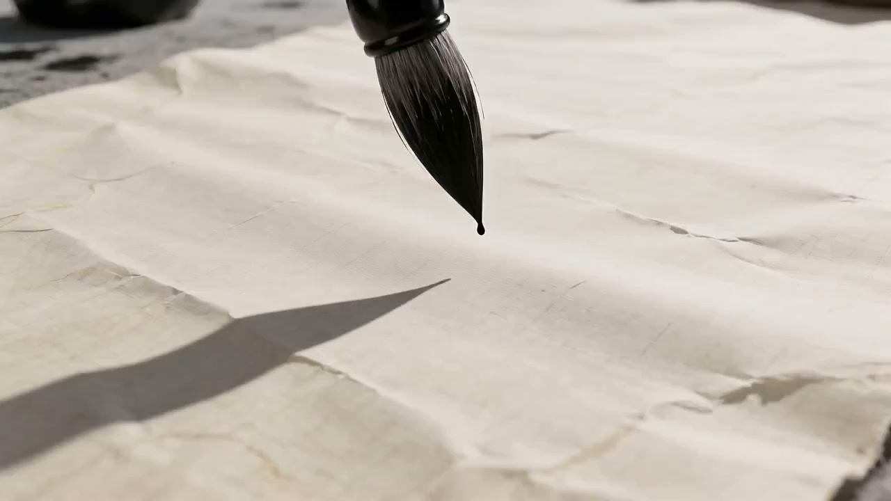 A traditional Chinese ink wash painting of a horse coming to life. The black ink swirls and glows with golden magical energy. The horse leaps out of the parchment and gallops through modern city streets, ancient palaces, and finally into space, forming a celestial circle. Mythical, artistic, transitions.